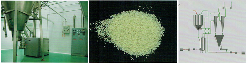 微囊化造粒就是利用壁材(或称为包囊材料)把心材(或称为囊心物质)包覆在其中。经过微囊化包埋之后,壁材就能够保护被包裹的物料,使之与外界不宜环境隔绝,达到最大限度地保持原有的色香味、性能和生物活性,防止营养物质的损失与破坏。此外,有些物料经微胶囊化后可掩盖自身的异味,或由原先不易加工的液体转化成为较稳定的固体形式,从而大大地防止或延缓了产品劣变的发生,提高了产品的品质。另外,经过微囊化的产品可以满足客户对颗粒度的要求,同时还具有比一般传统喷雾干燥的产品更好的溶解性。